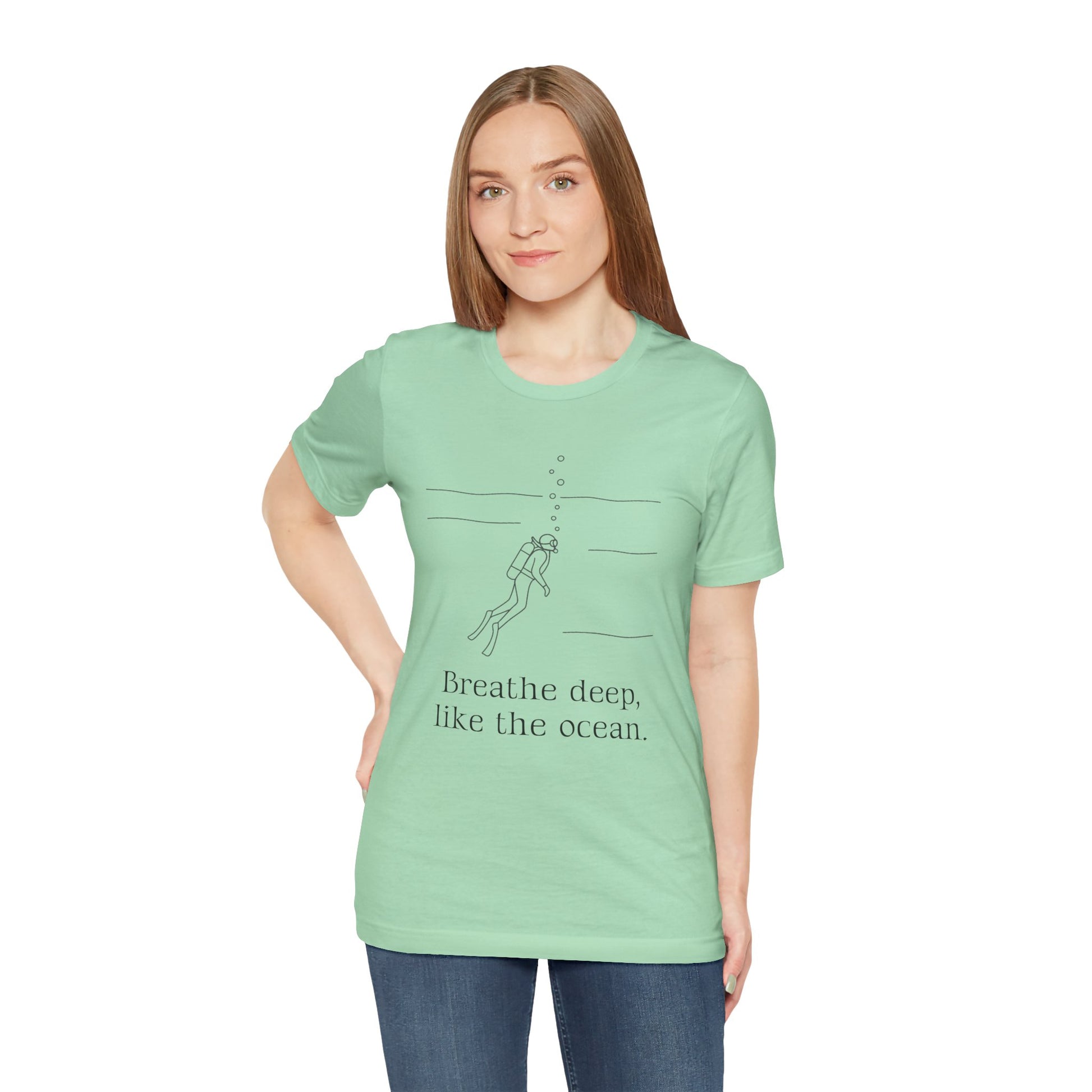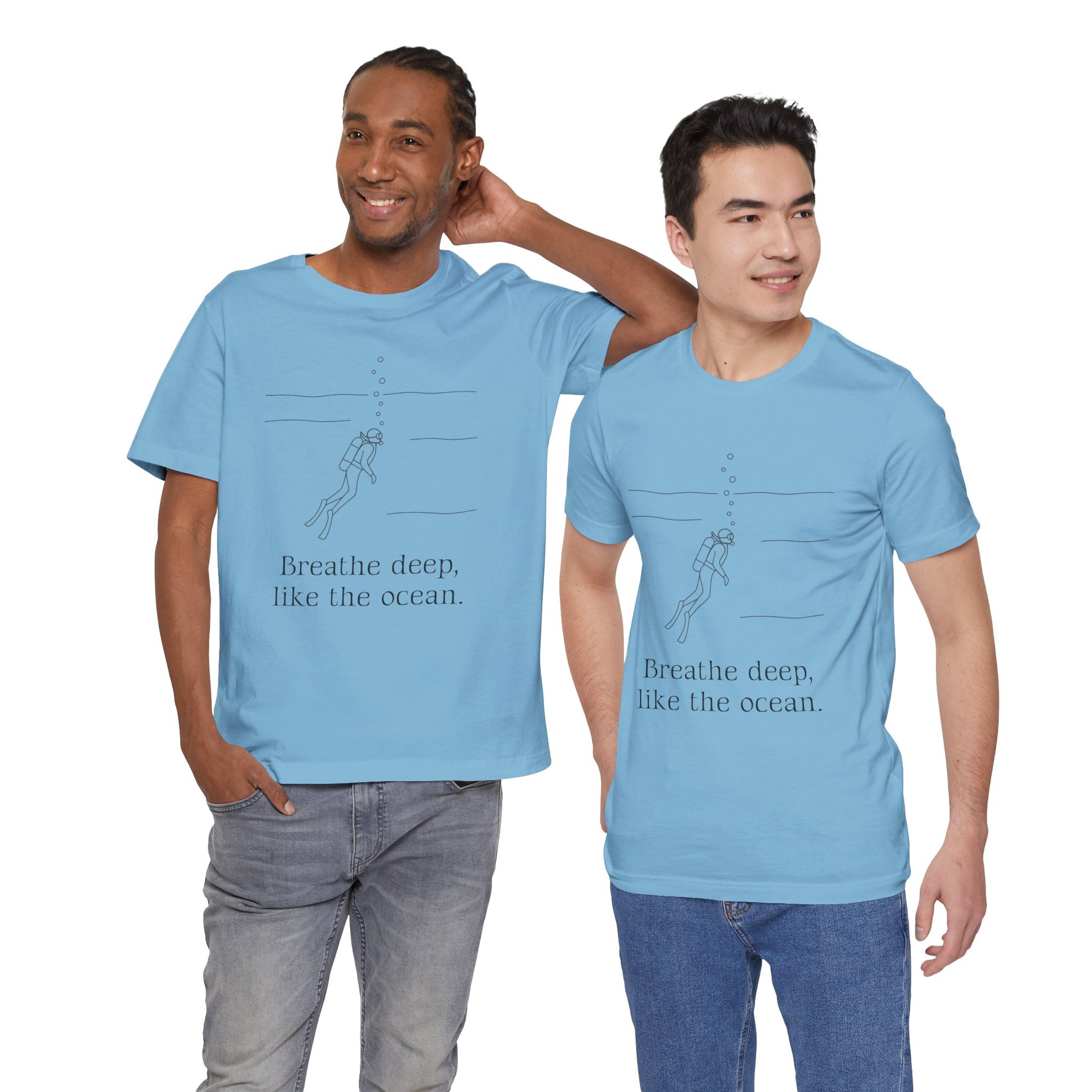 Breathe Deep Like the Ocean Tee – Scuba Diving Inspired Unisex Jersey Shirt for Mindfulness & Ocean Protection
