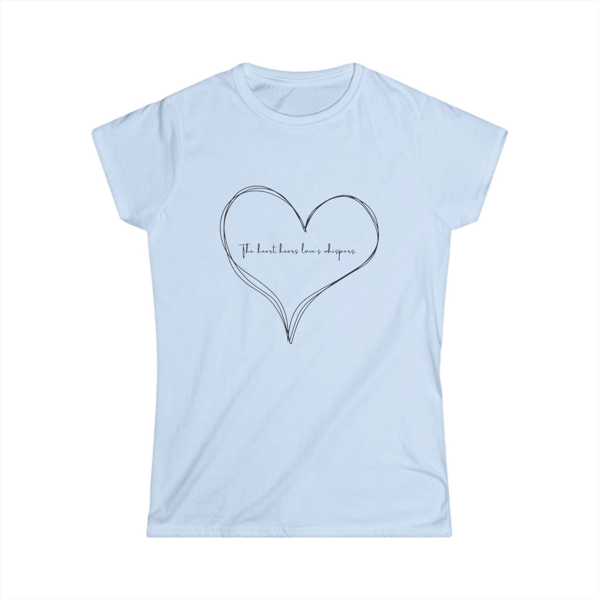 Celebrate the beauty of love with the Heartfelt Love Women’s Softstyle Tee. Featuring a delicate heart design and the inspiring words, “The heart hears love’s whispers,” this t-shirt is the perfect blend of comfort and charm. Crafted with super-soft fabric, it’s designed for those who appreciate meaningful messages and timeless style.
