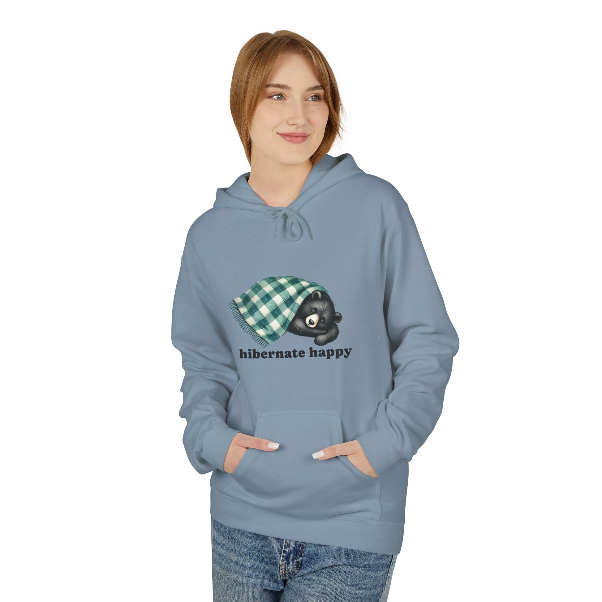 Hibernate Happy Unisex Midweight Softstyle Fleece Hoodie | Cozy Bear Rest Hoodie by Nine Scoops