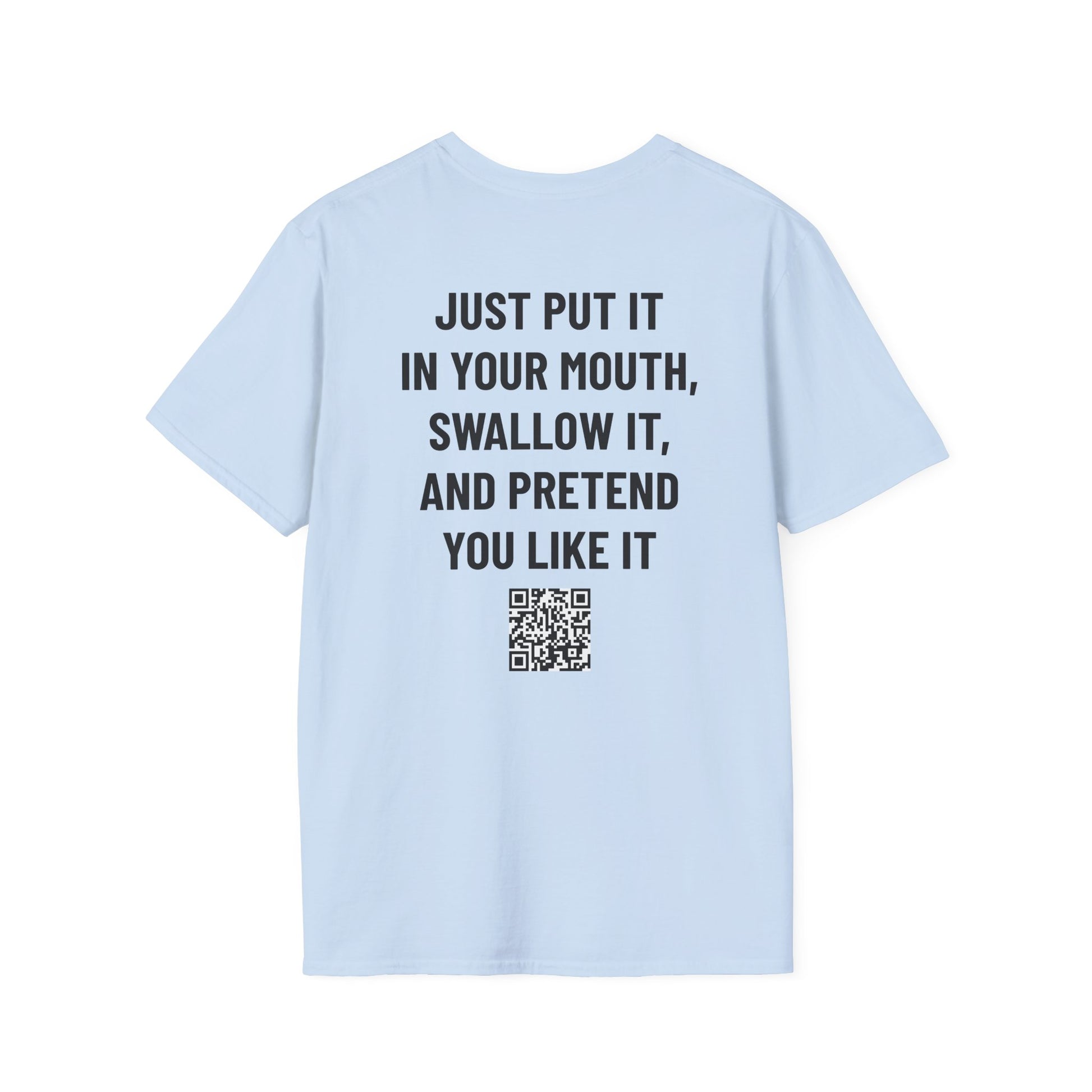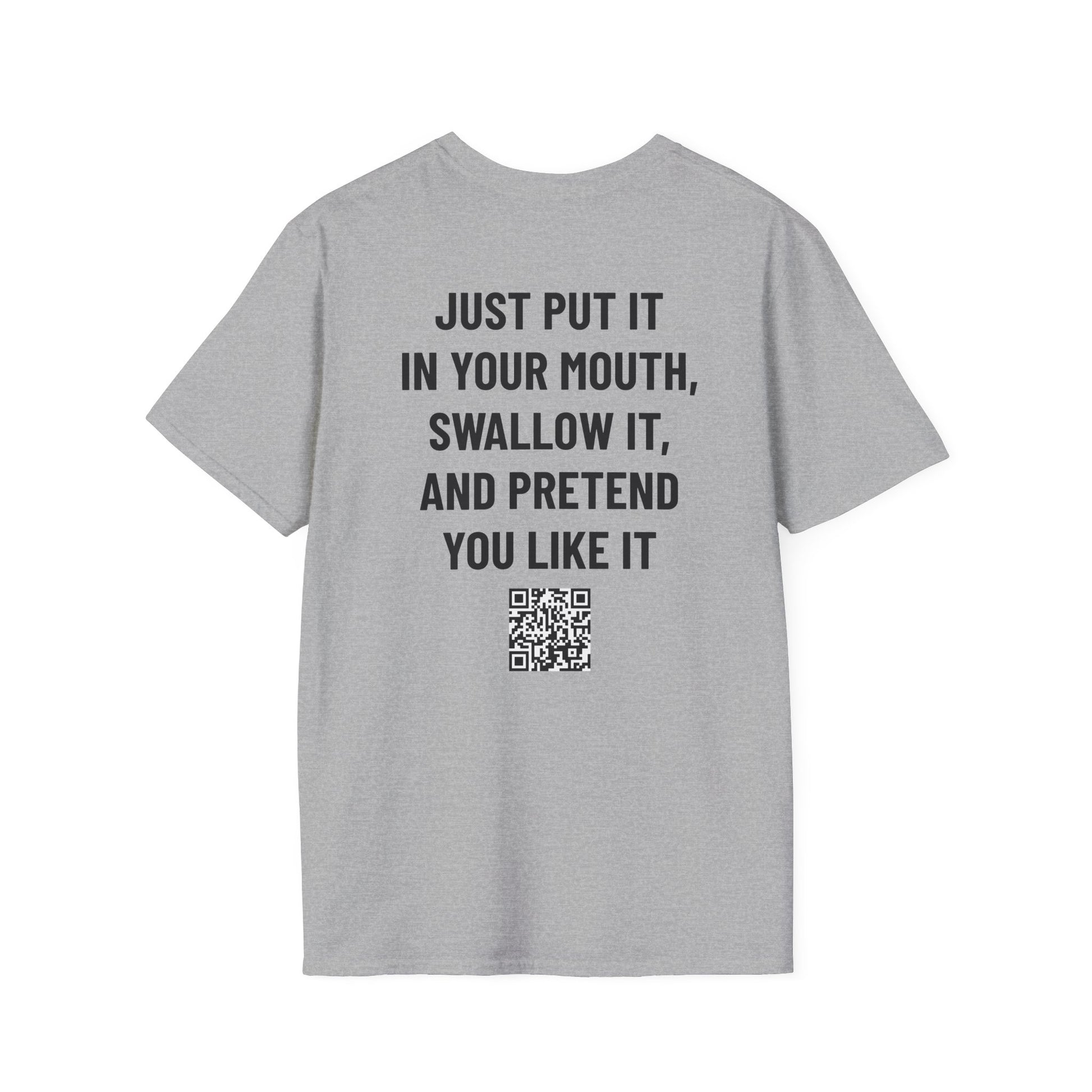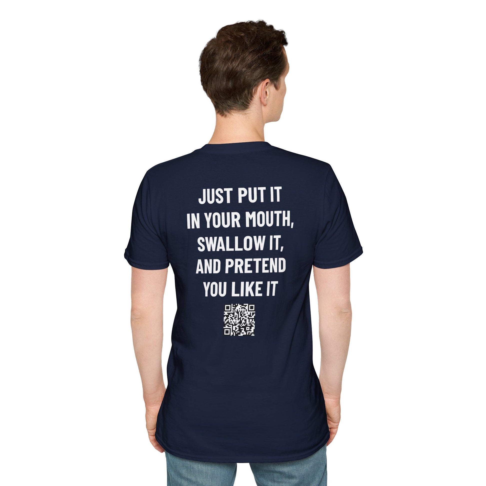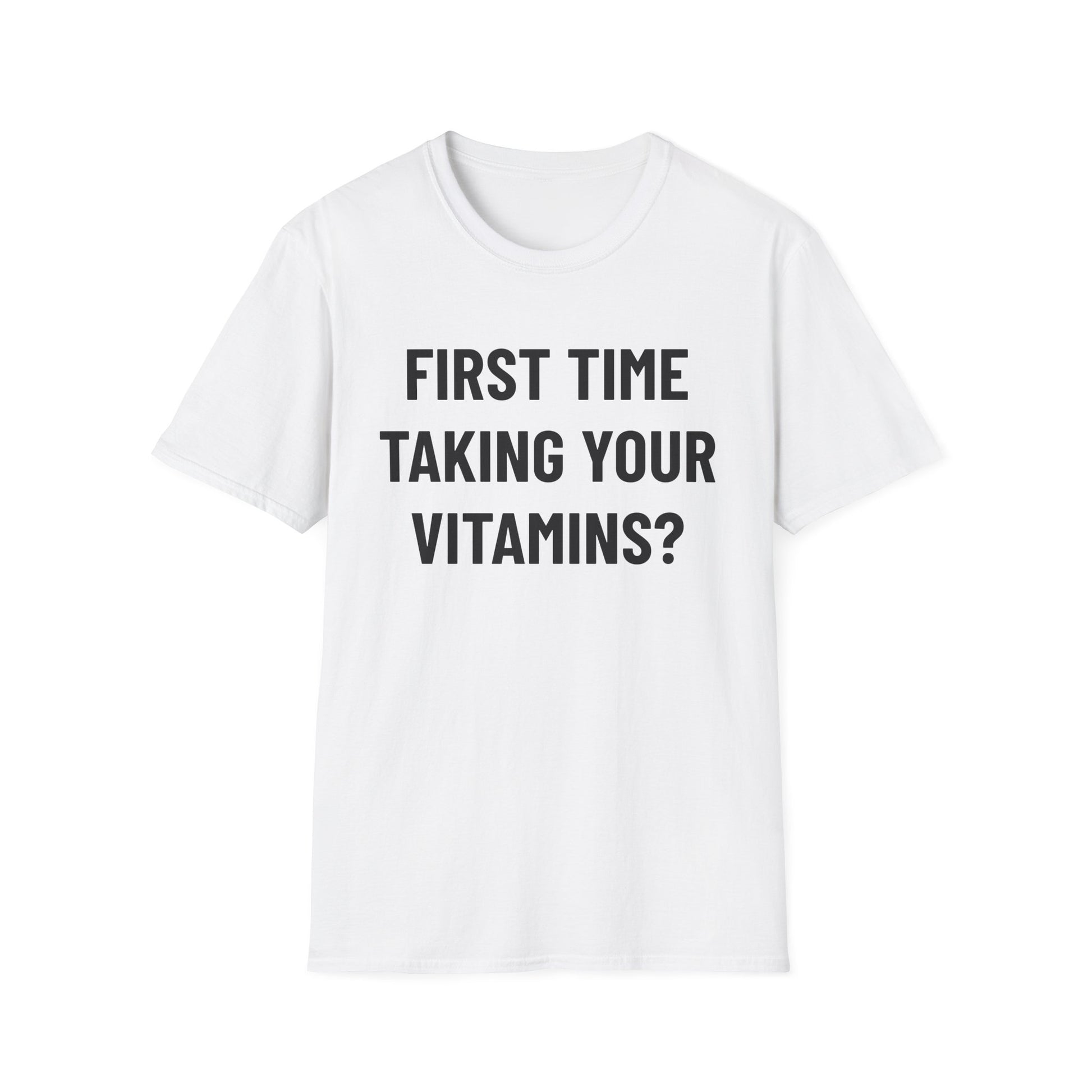 The unisex soft-style t-shirt puts a new spin on casual comfort. Designed for double-takes, this tee pairs a mischievous back line with a wholesome front reveal. It’s all about vitamins—nothing more—making it the ideal shirt for anyone who loves humor that toes the line without ever crossing it.