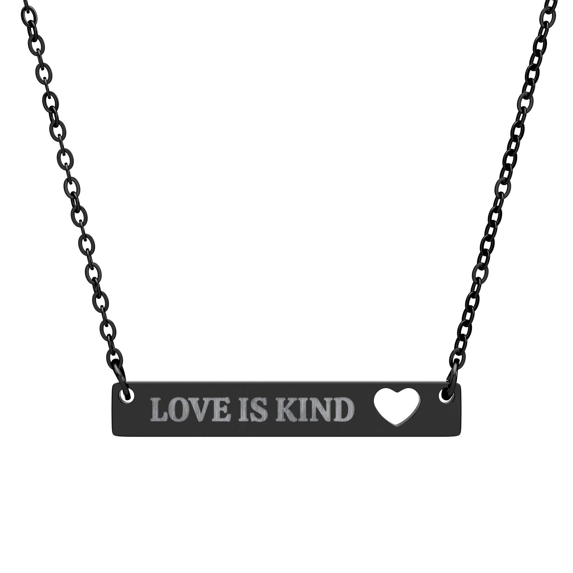 Love Is Kind Valentine Bar Necklace – Engraved Heart Cutout Jewelry Gift