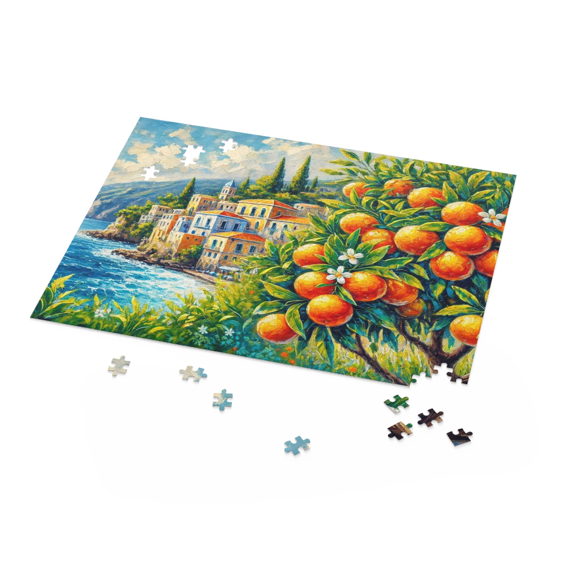 Embark on a journey to the sun-kissed coasts of the Mediterranean with our "Mediterranean Escape" 500-Piece Puzzle. This beautifully detailed puzzle, featuring a charming coastal village surrounded by lush orange groves, is designed for travel lovers who appreciate both adventure and tranquility. As you piece together this scenic landscape, you'll not only enjoy a mental escape to a Mediterranean paradise but also practice mindfulness and presence. Puzzles are a wonderful way to center your thoughts and stay in the moment, offering both relaxation and a rewarding challenge. Perfect for those who love travel, nature, and mindfulness, this puzzle from Nine Scoops is your ticket to a serene and mindful experience.