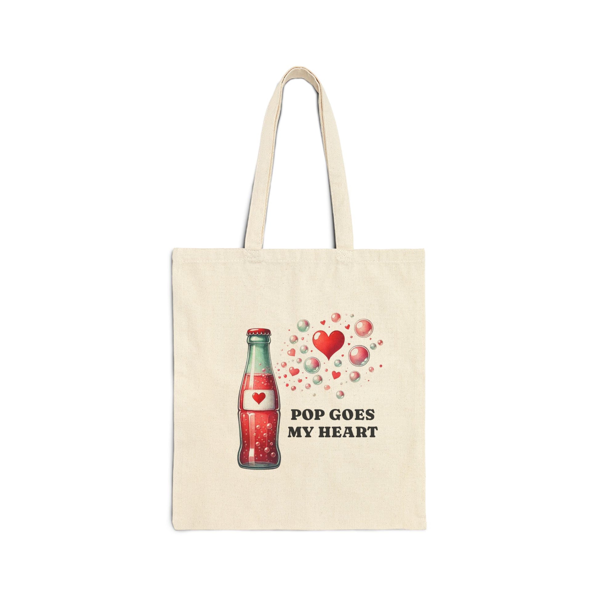 Pop Goes My Heart Cotton Canvas Tote Bag – Valentine's Day Soda-Inspired Design