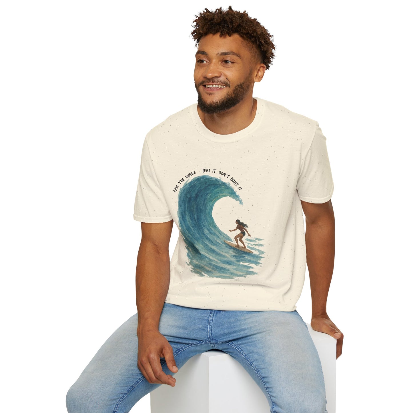 Feel your feelings and ride the wave with this inspiring surf-themed unisex t-shirt from Nine Scoops. Featuring a vibrant illustration and the mindful message "Ride the wave – feel it, don’t fight it," this tee is all about embracing emotions and letting life flow. Whether you're into surfing, coastal vibes, or emotional wellness, this shirt makes a perfect gift for anyone who knows the healing power of the sea.