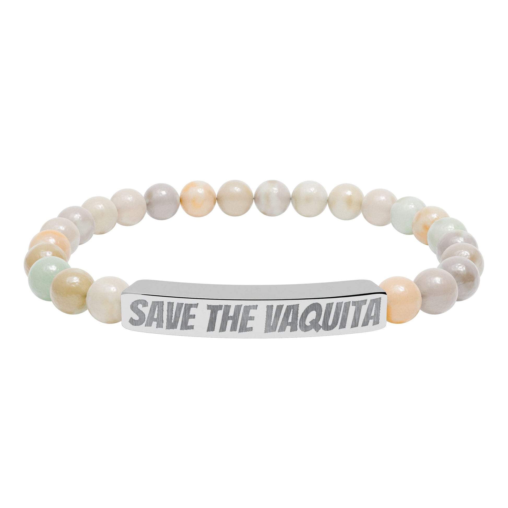 Save the Vaquita Natural Stone Beaded Bracelet – Ocean Wildlife Engraved Jewelry