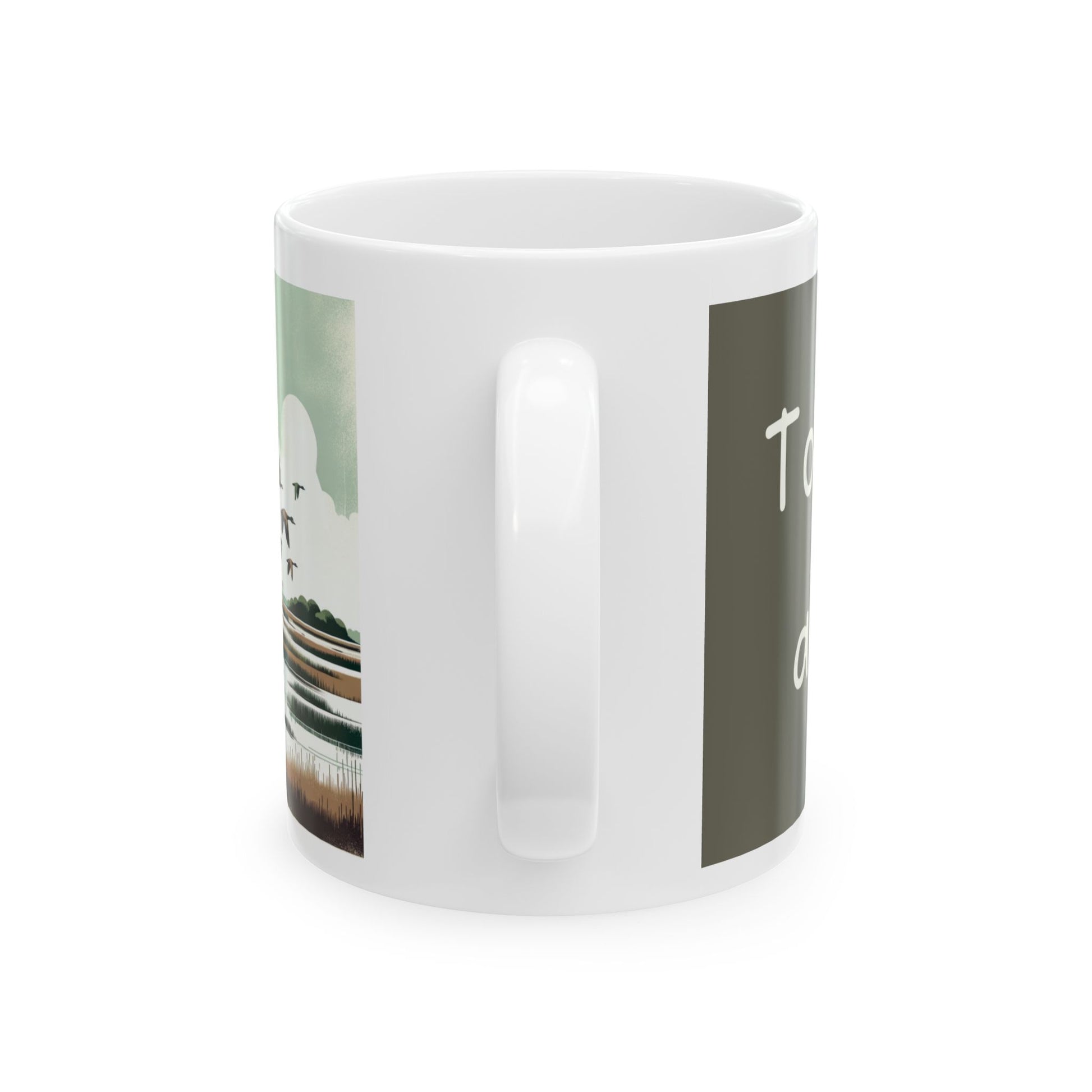 With a serene flight of geese above the marsh, our Today is a Gift - Canada Geese Flying Ceramic Mug, 11oz inspires you to seize the day's endless possibilities. This mug isn't just for your favorite warm drink; it's a daily reminder to cherish each moment. With each sip, reflect on the beauty of life's journey and the natural grace found in a V-formation homeward bound. Whether you're gifting it to a loved one or making it a staple of your morning routine, this mug is a heartfelt nudge to live fully in the present, to appreciate the now—because today, indeed, is a gift.